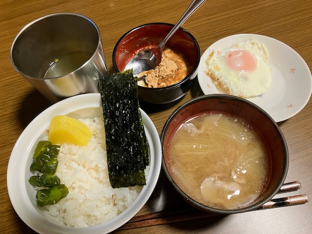 昨日の夕食が豚肉のお鍋だったので、残ったスープでお味噌汁にしました。