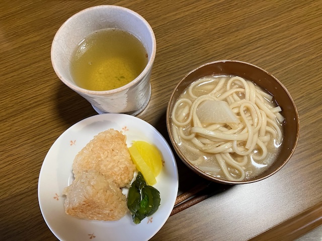 かつお出汁といりこ出汁と大根を追加して、うどんを茹でるときに塩分が出るので、味噌は足しませんでした。