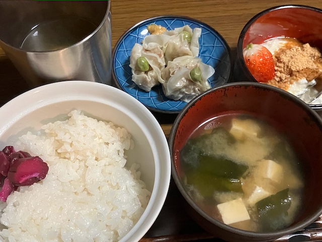 今朝のメインは、父が作ってくれた焼売。