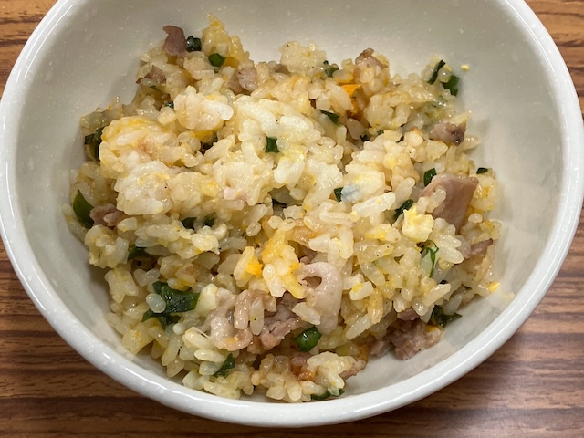今朝は宿直明けだったので、リュウジのバズレシピで紹介されていた『ねぎ塩炒飯』を冷凍して持って行って、レンチンしました。