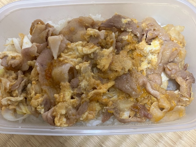 今日のお昼は、豚肉と卵の他人丼。