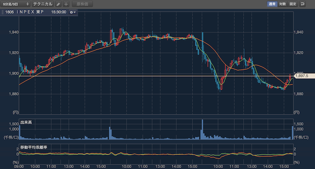 昨日じわじわと値上がりして、今日は割と大きめに下げましたね。