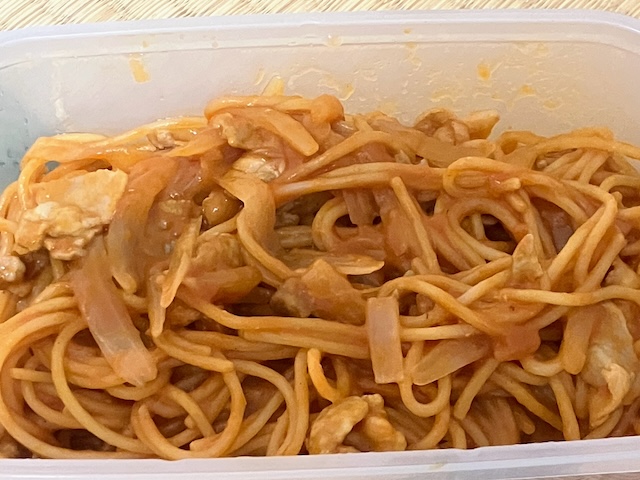 昨日のお弁当は「ナポリタンっぽいパスタ」。