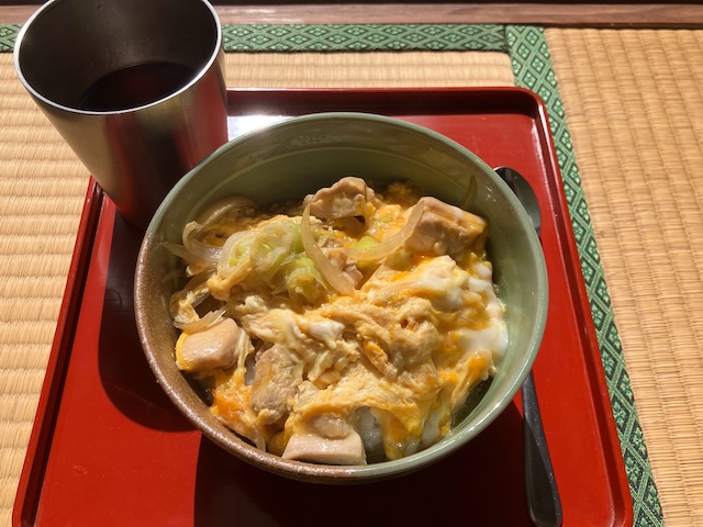 昨日、冷凍庫から冷蔵庫に移動させておいた鶏もも肉で、親子丼を作りました。
