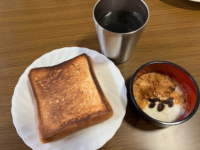 今日は宿直明けで、冷凍パンをレンチンして朝食に。