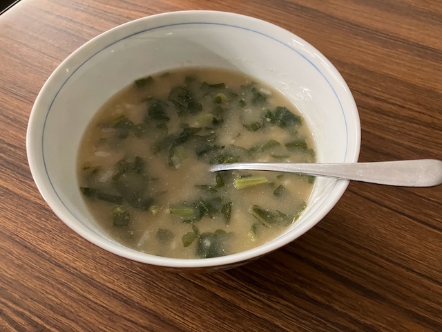 大根葉のお味噌汁と冷凍ご飯で雑炊にしました。