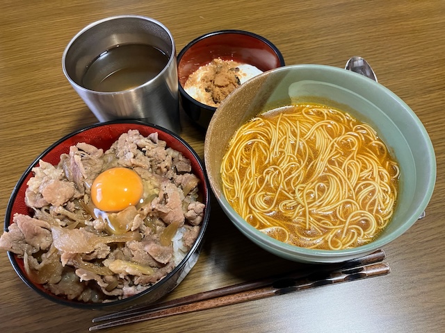 今日は朝ごはんどころではなかったので、お昼をがっつりと食べました。