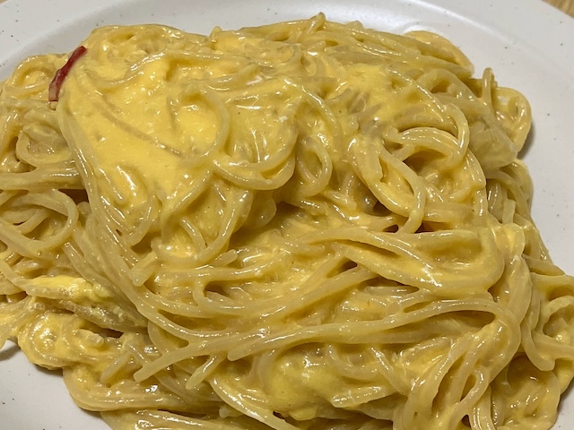 - 塩と顆粒コンソメで味を整えて、パスタを茹でる。